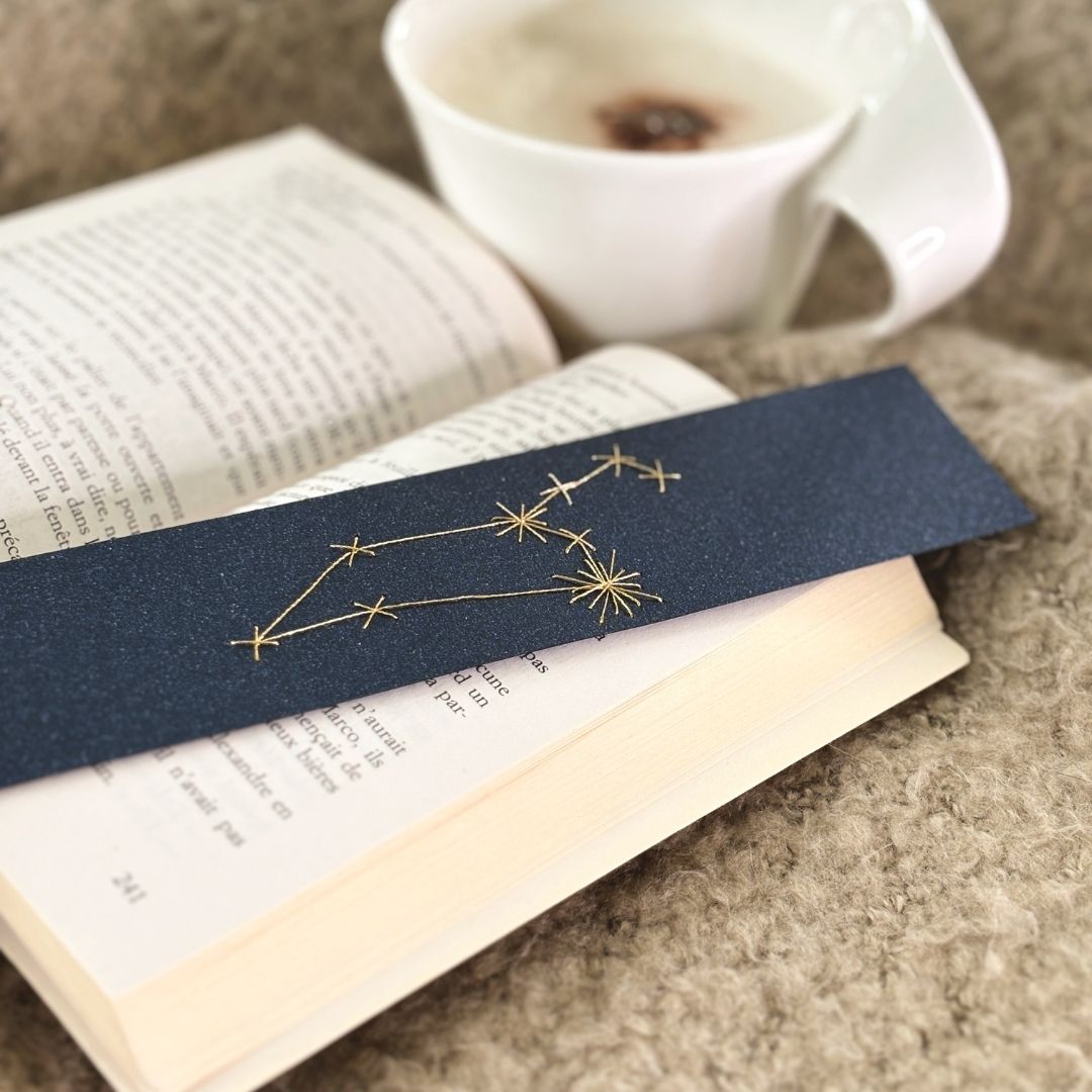 Au cœur du coffret, un DIY autour de la broderie papier : réalise des marque-pages célestes inspirés de l’astrologie. Point après point, laisse-toi guider par ce geste simple et apaisant, pour transformer une feuille en une petite œuvre délicate qui accompagnera toutes tes lectures.