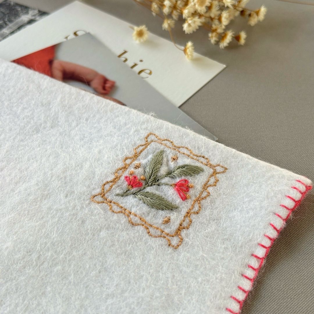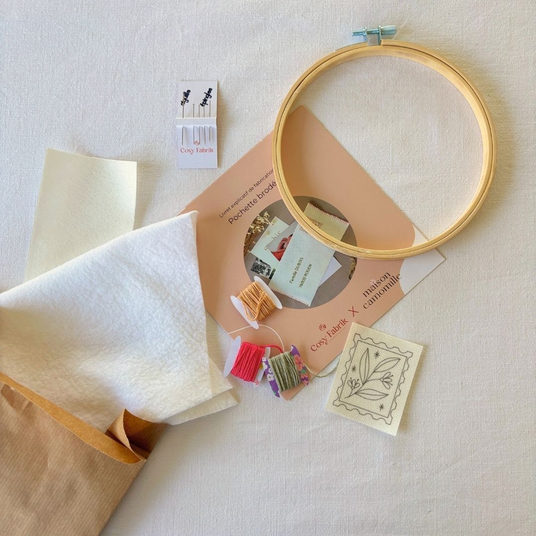 Ce mois-ci, Cosy Fabrik t’invite à broder une délicate pochette en forme d’enveloppe, à personnaliser selon tes envies.